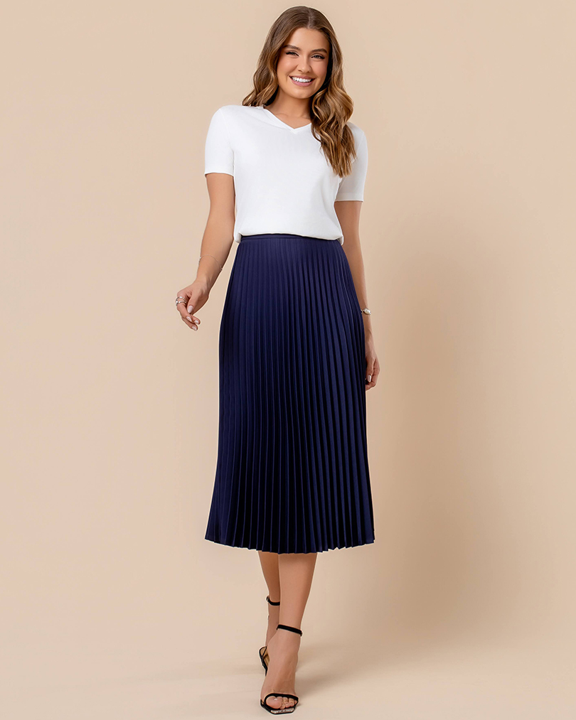 Atenção! Toda saia plissada é confecccionada em poliester, outros tecidos não seguram o plissado. Nosso poliester é de ótima qualidade, muito leve e fresco!