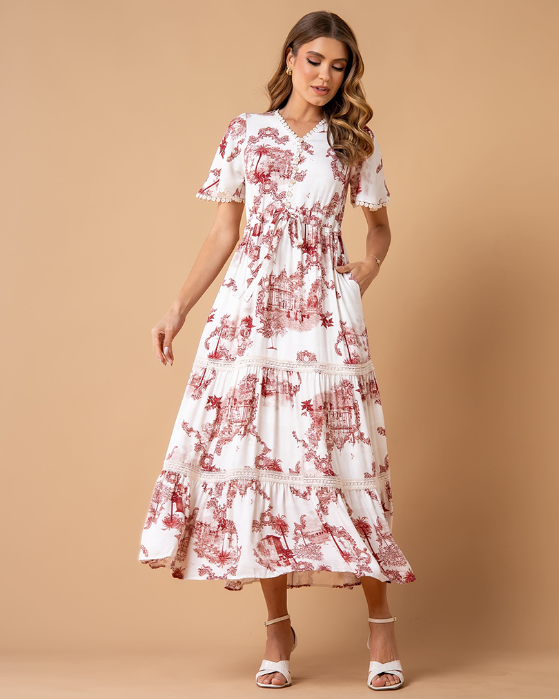 Possui bolsos invisiveis, cintura de cordão, que também permite que o vestido seja usado com conforto até o fim de gestações.